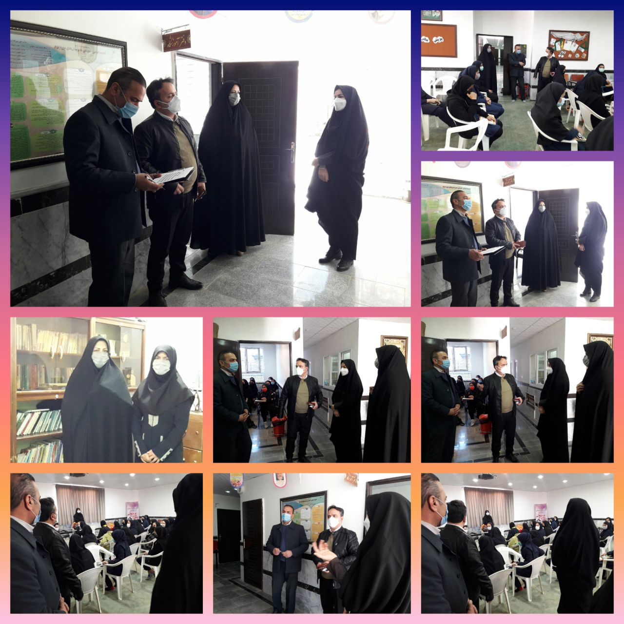 حضور جناب آقاي شهري كارشناس مسؤول آموزش متوسطه و سركارخانم حيدری كارشناس آموزش متوسطه ی دوم جهت بازديد از طرح و برنامه ی آموزشی دبیرستان و كيفيت برگزاری كلاس ها
