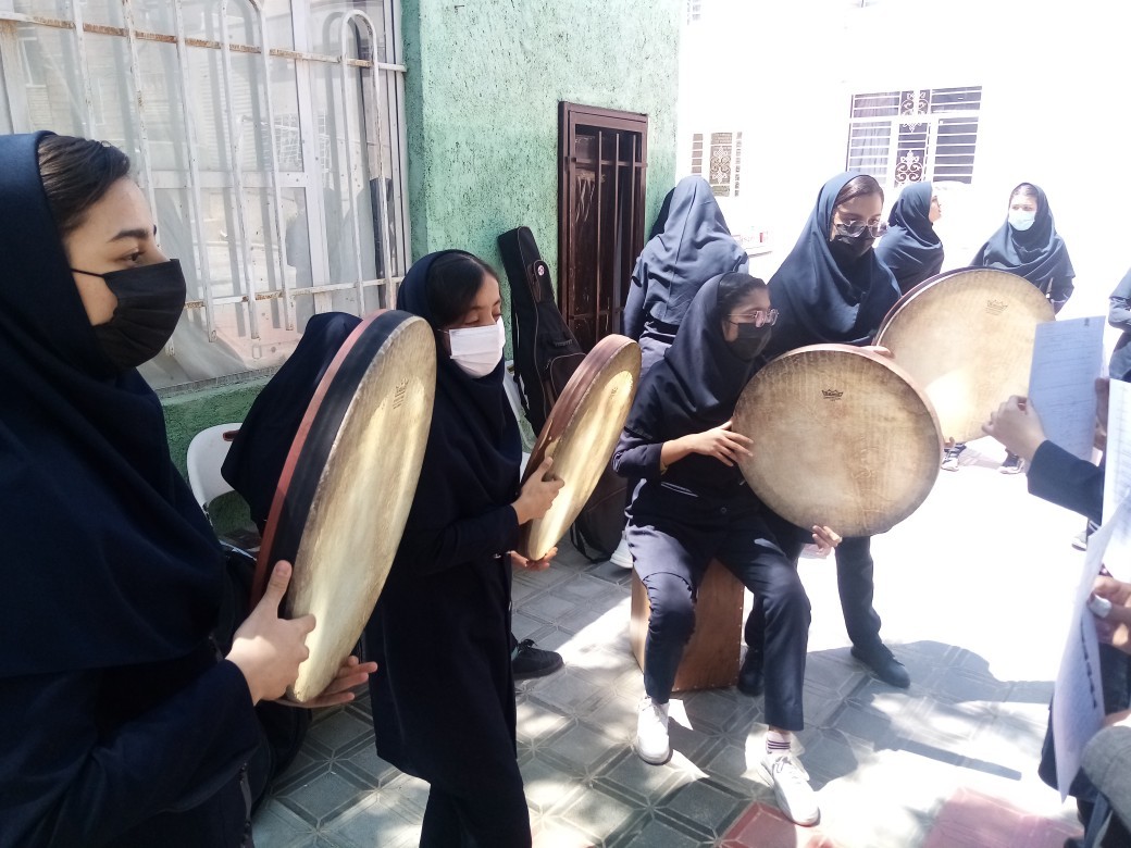 تمرین گروه موسیقی مدرسه در فضای باز 17 اردیبهشت